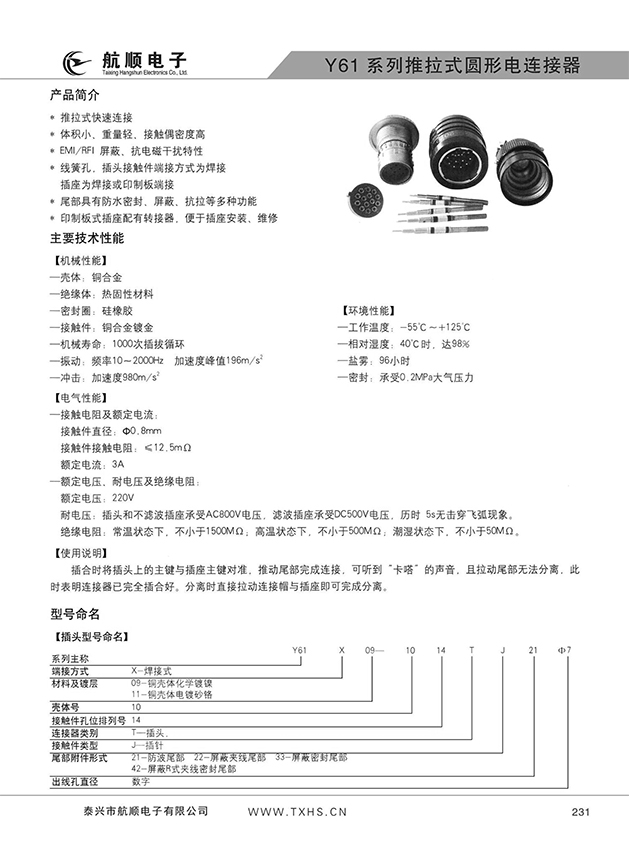 Y61系列推拉式圓形電連接器,其連接方式為推入式鎖緊塊鎖緊,該鏈接器具有插拔迅速,使用方便,體積小,密度高,耐環(huán)境好,外形美觀,屏蔽性好等特點(diǎn)。