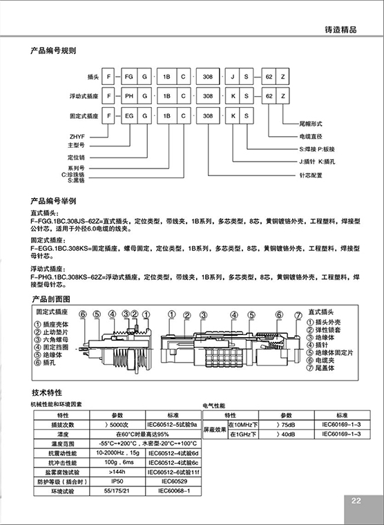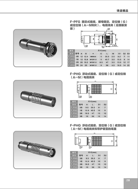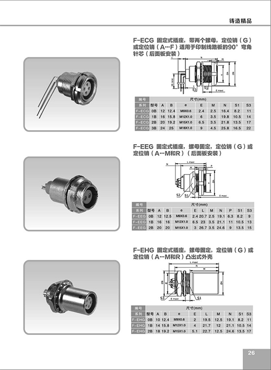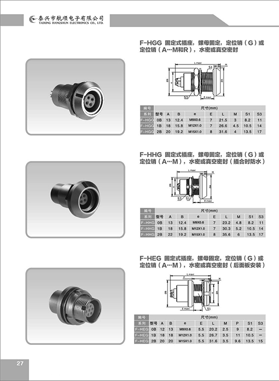 插座形式有:M: 插座是真空密封型插座,外螺母固定結構,半圓金屬防止誤插。