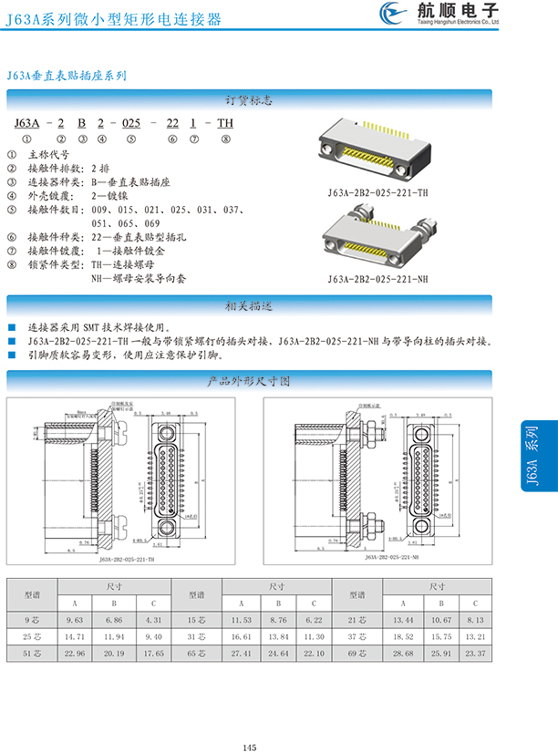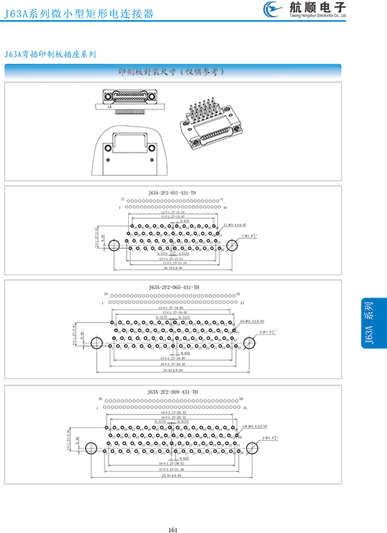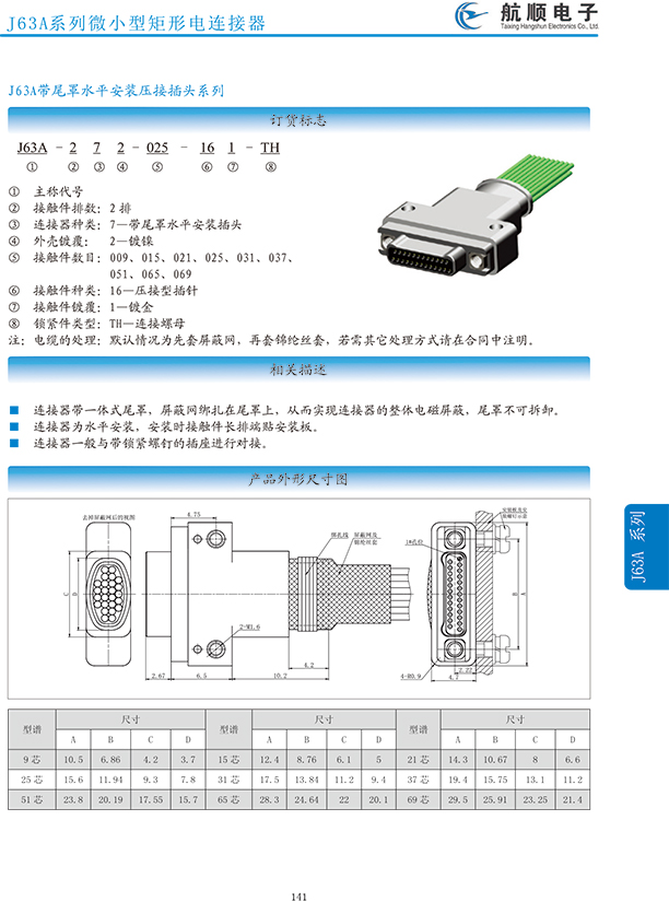 產(chǎn)品特點: 規(guī)格有9、15、21、25、31、37、51、65、69芯; 采用柔性針結(jié)構(gòu),間距為0.635mm; 占用空間小,頭、座采用螺釘螺母旋合對接,插拔柔和、鎖緊可靠; 產(chǎn)品密度高、體積小、重量輕、可靠性高;