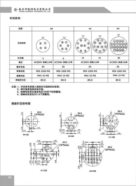 ⑥ 接插件芯數(shù):2、3、4、5.。。。。芯