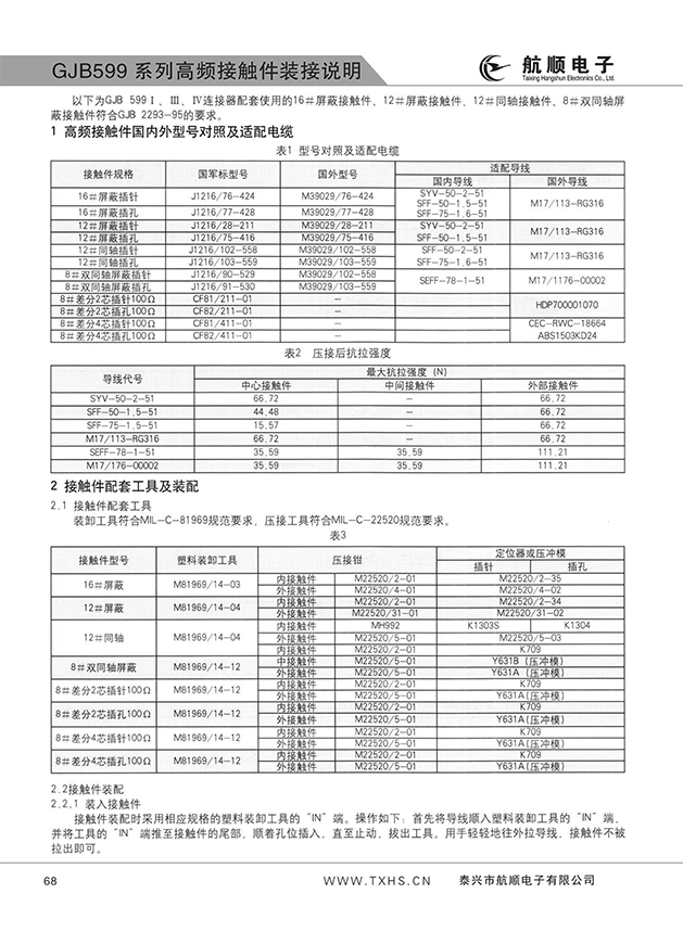 GJB599系列附錄2航空插頭